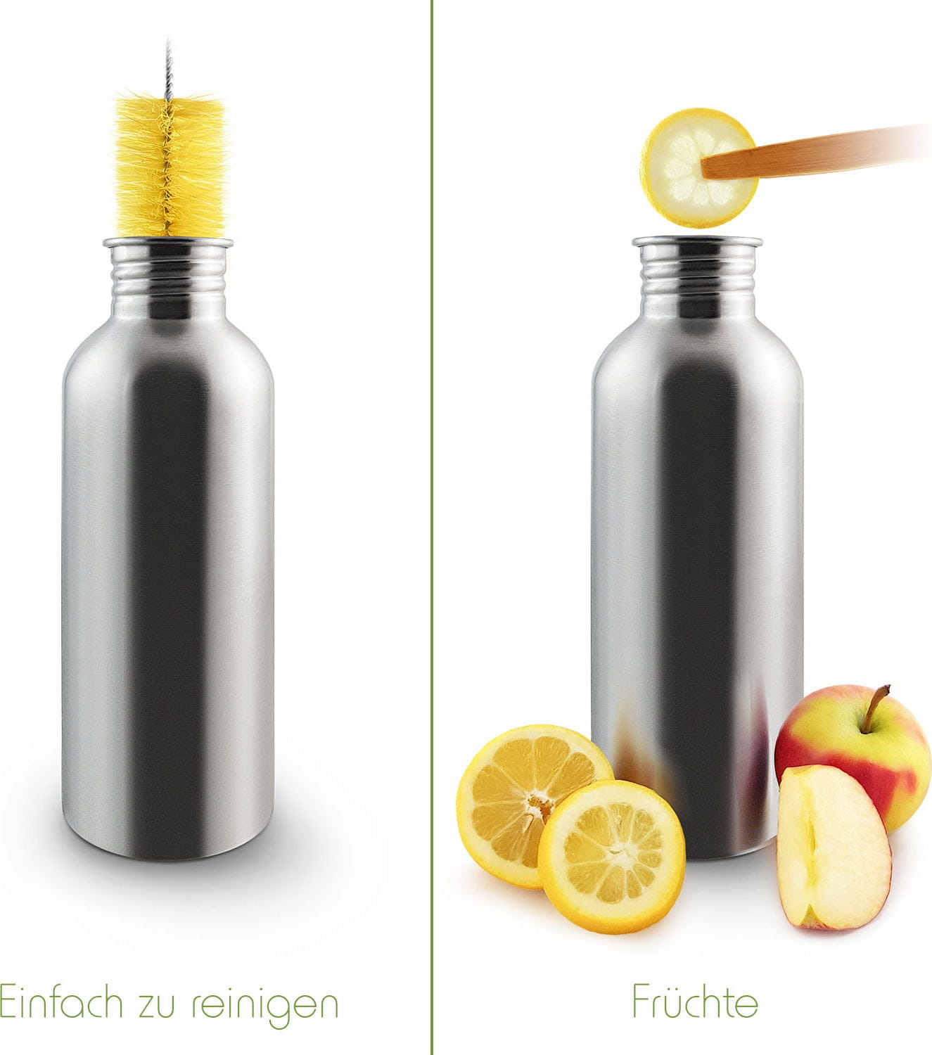 - Se nettoie facilement avec une brosse de nettoyage (goupillon) pour bouteille.