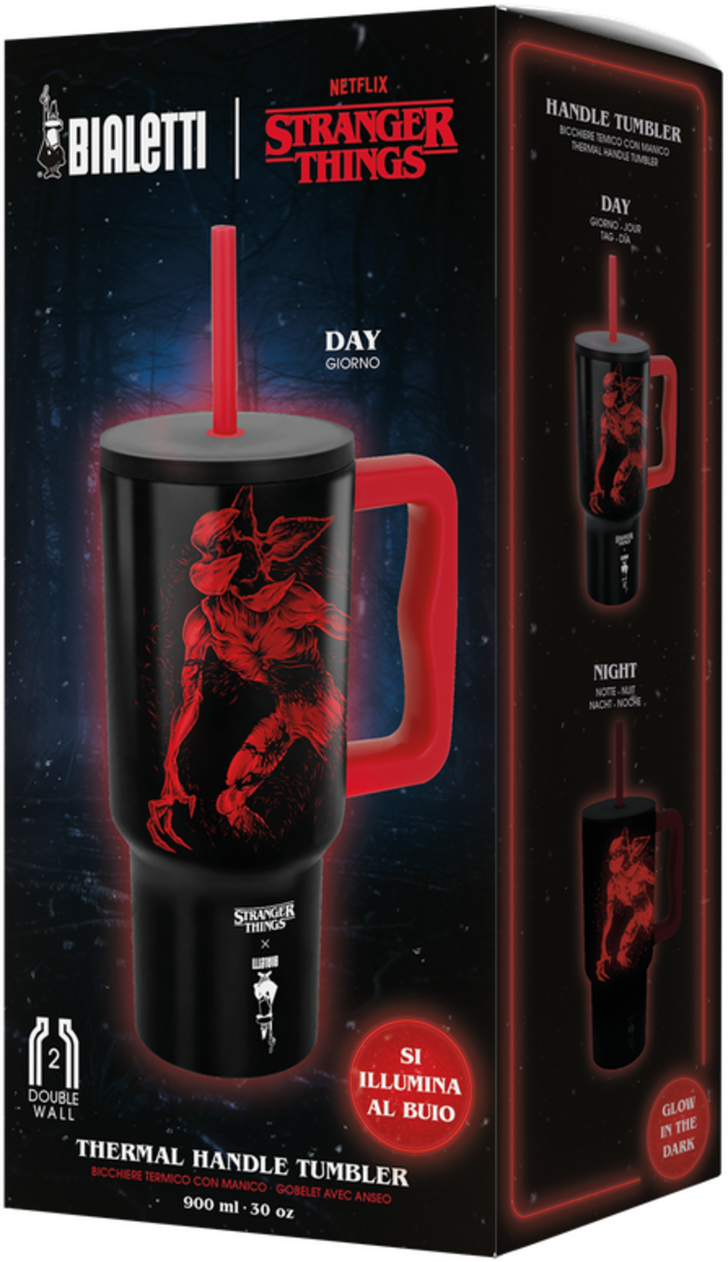 Les illustrations exclusives en 3D du design "Stranger Things" font de ce tumbler haut de gamme le compagnon idéal du quotidien.