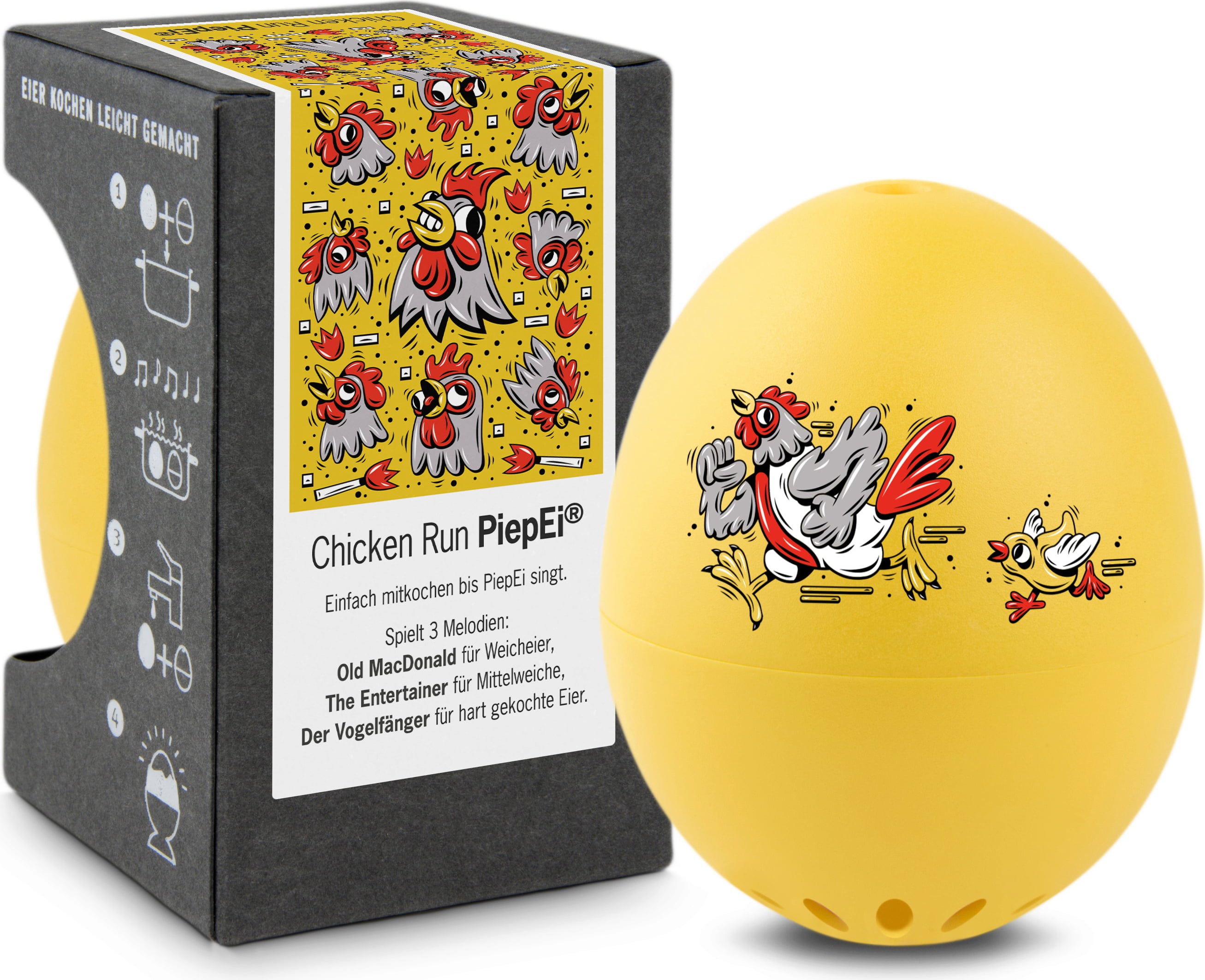 On le sait bien : les œufs à la coque sont toute une science. Tantôt l’œuf est trop dur, tantôt il est trop mollet. Le PiepEi Chicken Run de Brainstream est l’assistant idéal pour obtenir votre œuf parfaitement cuit.