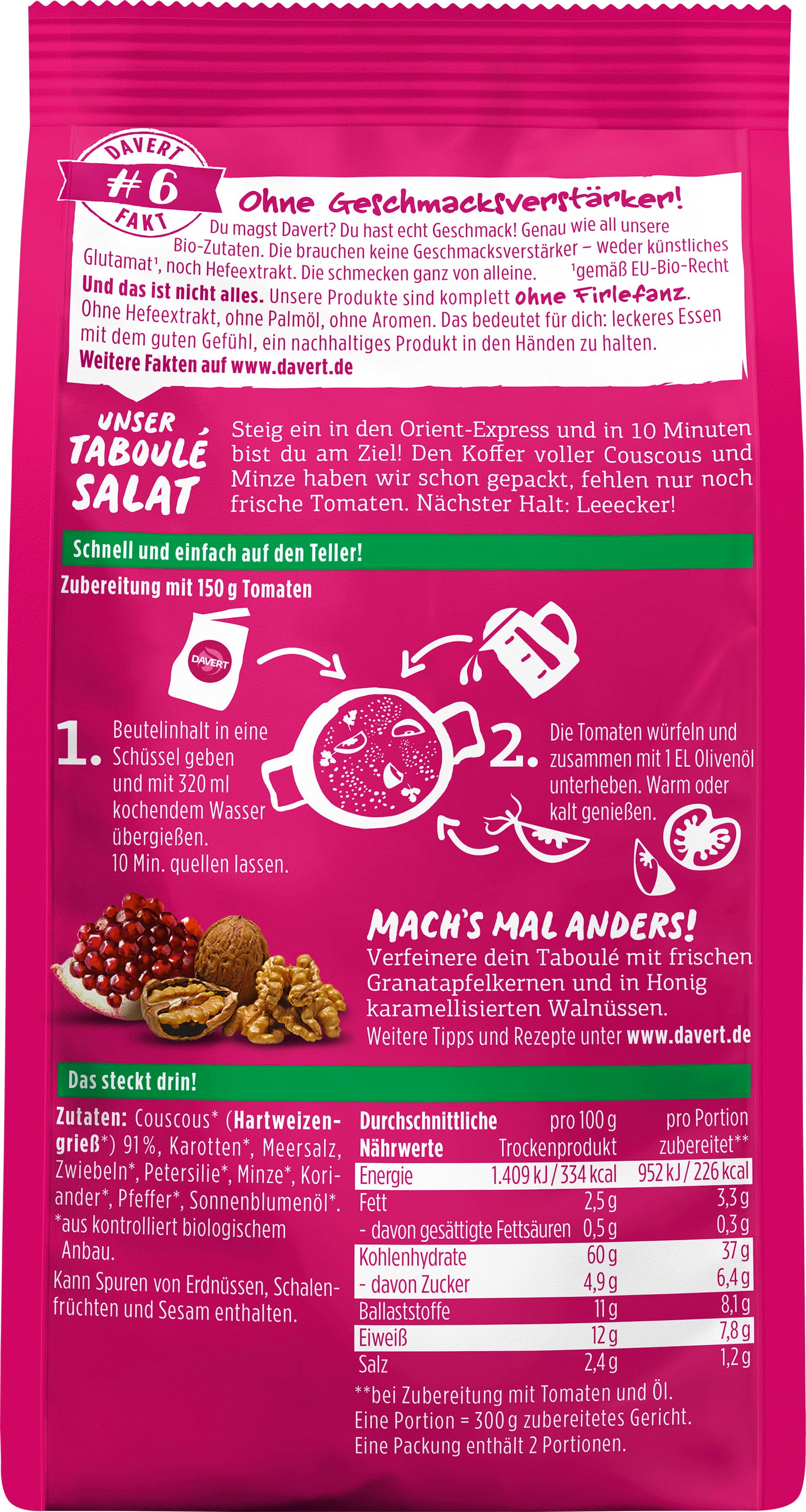 avis en français à propos du produit Davert Salade Taboulé Bio