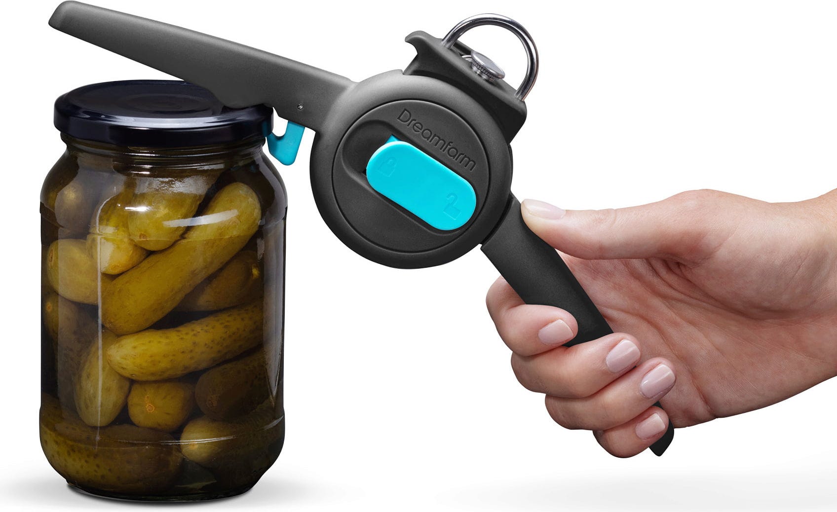 Il sert également de pratique ouvre-languette pour les boîtes de conserve et dispose d’un levier intelligent de libération du vide, permettant d’ouvrir des pots de confiture bloqués en quelques secondes et sans effort.