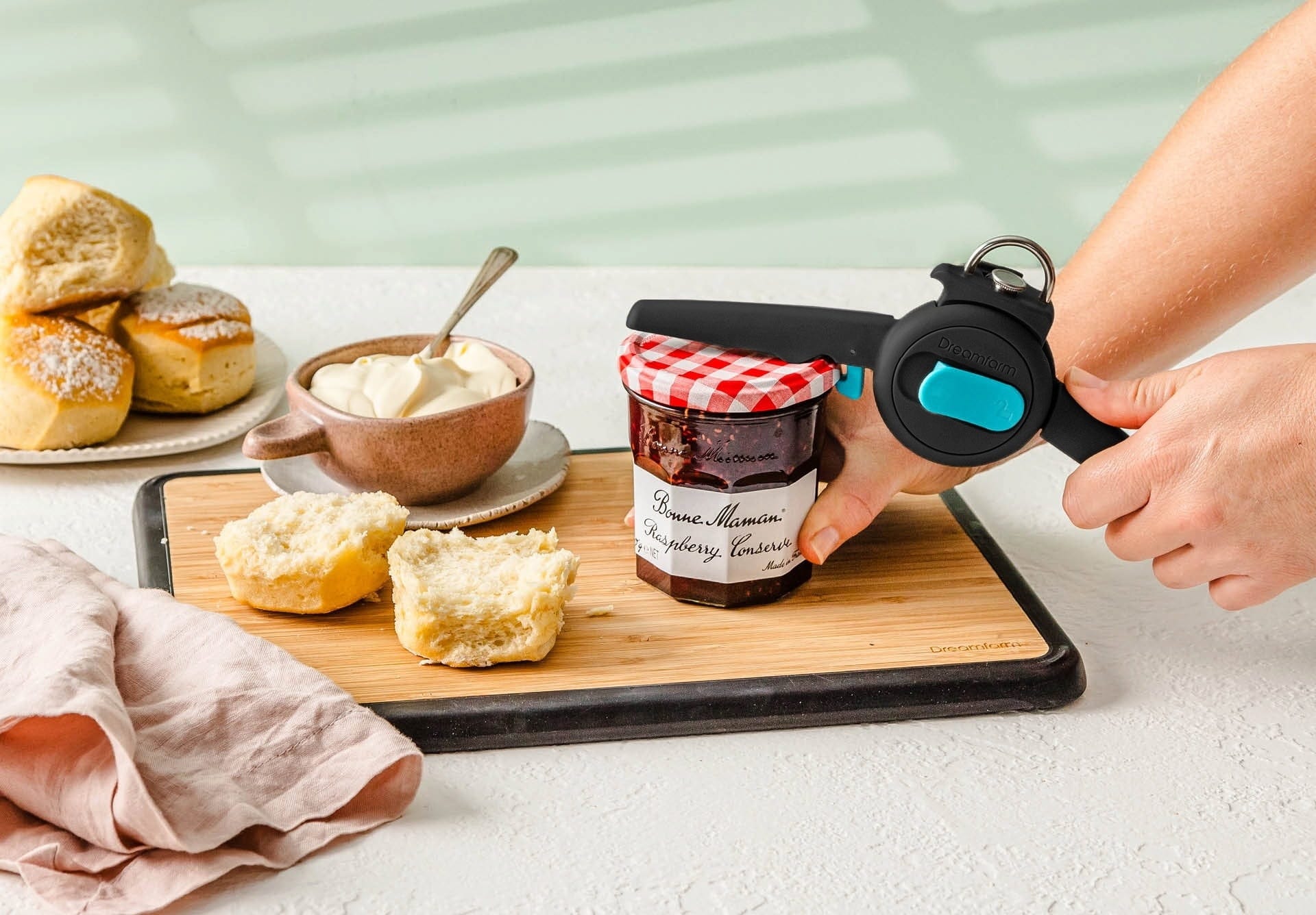 Avec l’ouvre-boîte Dopener de Dreamfarm, un ouvre-boîte innovant 3-en-1 est à disposition et fonctionne presque tout seul en serrant simplement les poignées. La roulette en acier inoxydable trempé découpe avec une grande précision sans laisser de bords tranchants, tandis que l’aimant intégré permet de soulever le couvercle après l’ouverture de manière hygiénique et sans contact.