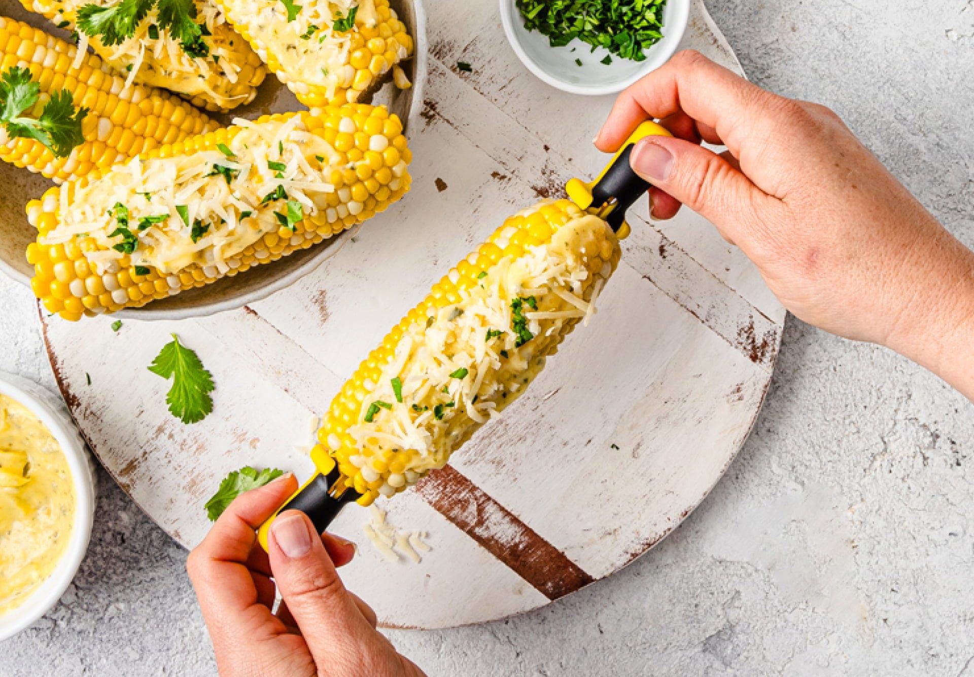 Prise en main sûre pour déguster des épis de maïs chauds