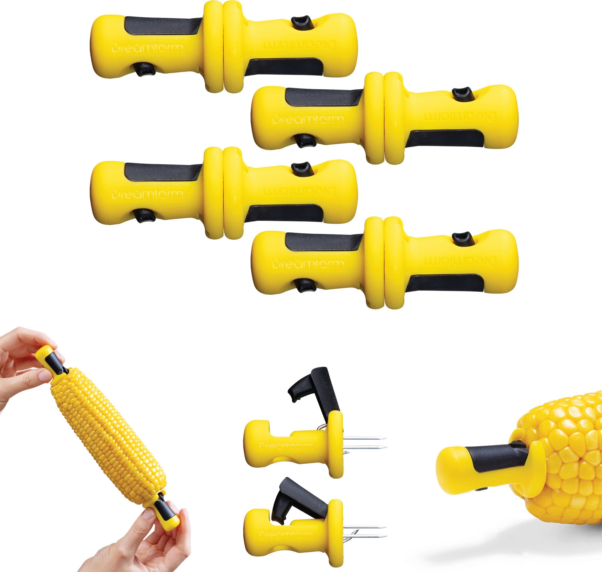 Les innovants pics pour épis de maïs Lockorns de Dreamfarm sont dotés de trois solides pointes en acier inoxydable qui s’insèrent facilement dans l’épi de maïs et, grâce au système de verrouillage intuitif, restent fermement en place sans osciller ni glisser pendant la dégustation.