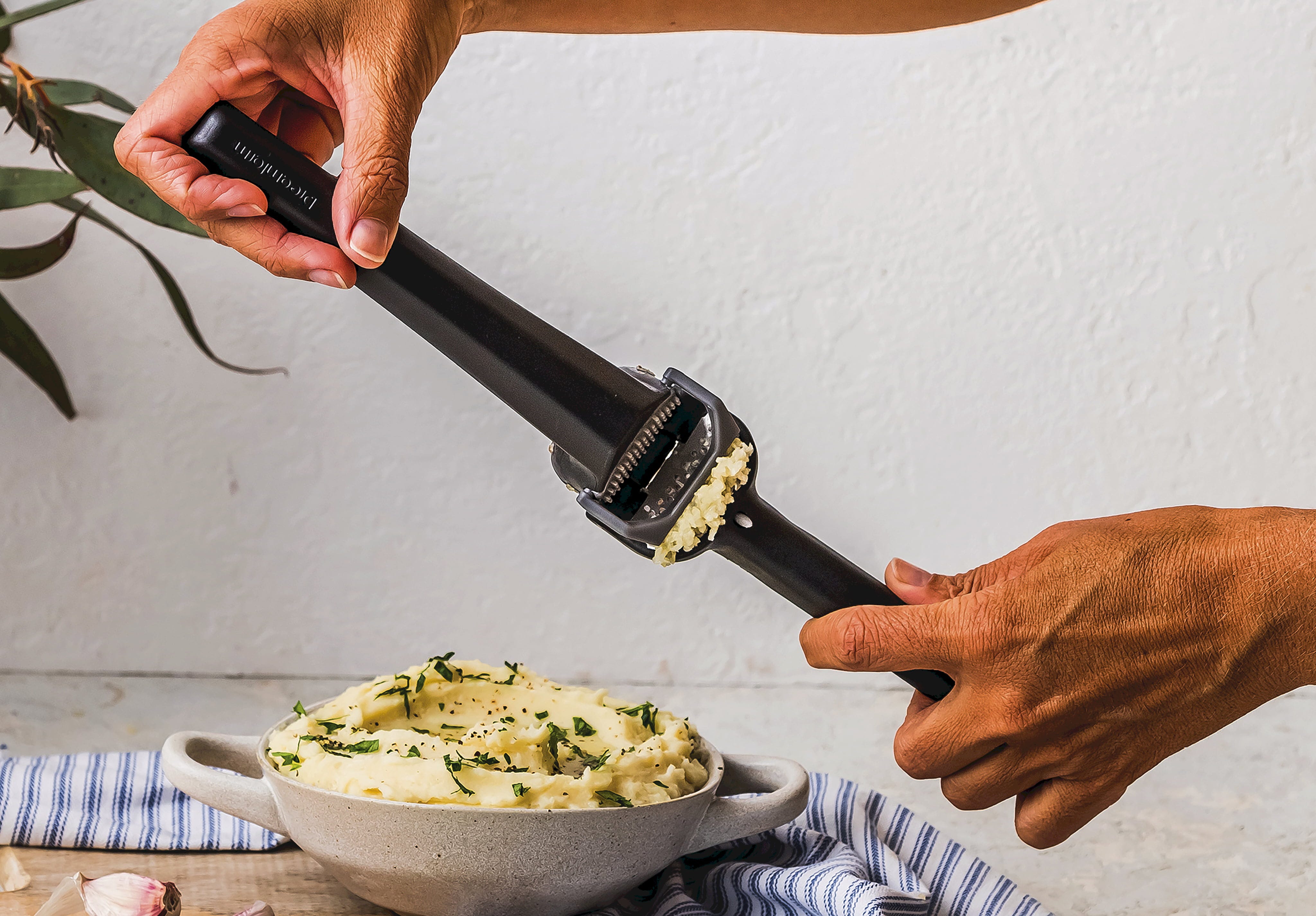 Il permet de presser plusieurs gousses d’ail en même temps, même sans les éplucher au préalable.
