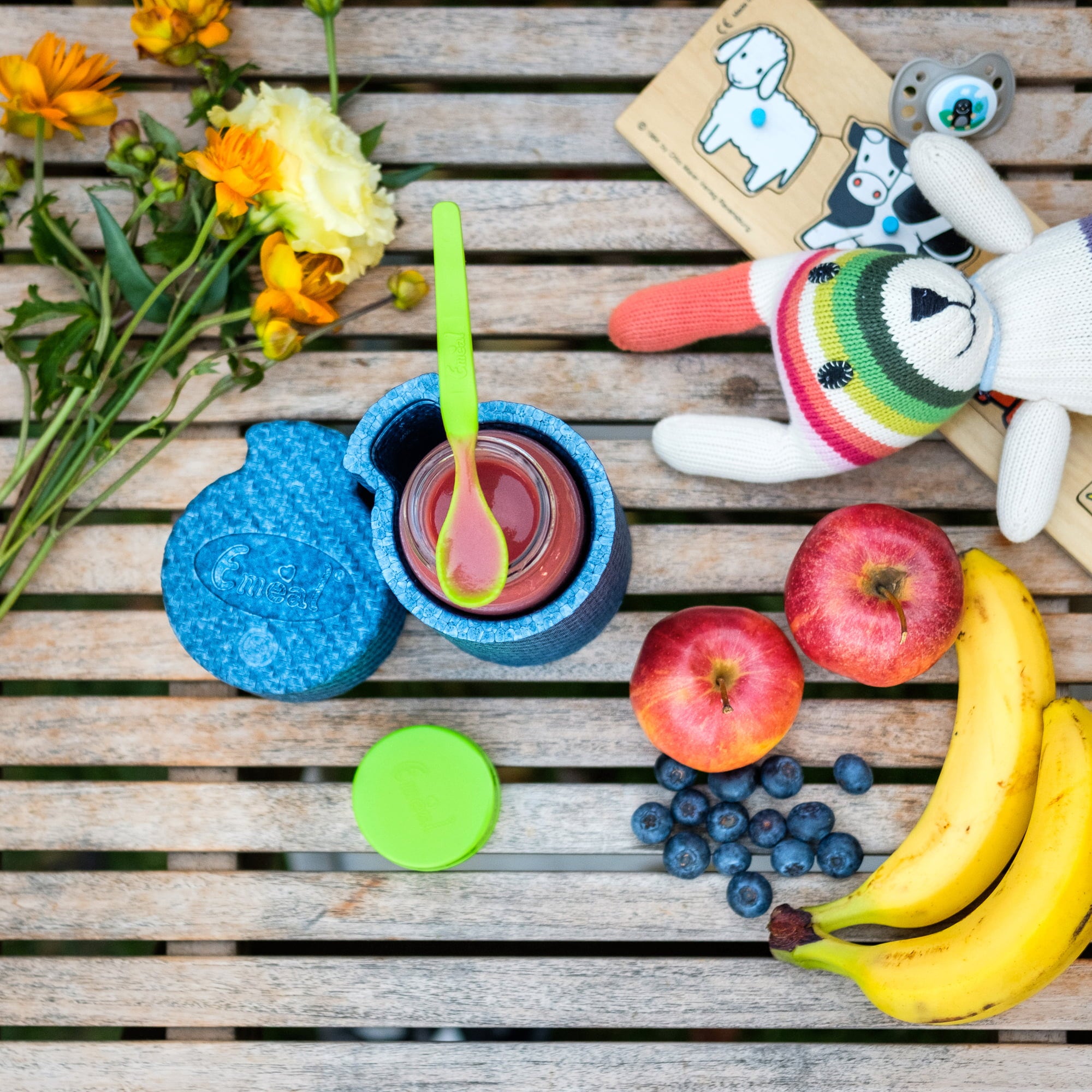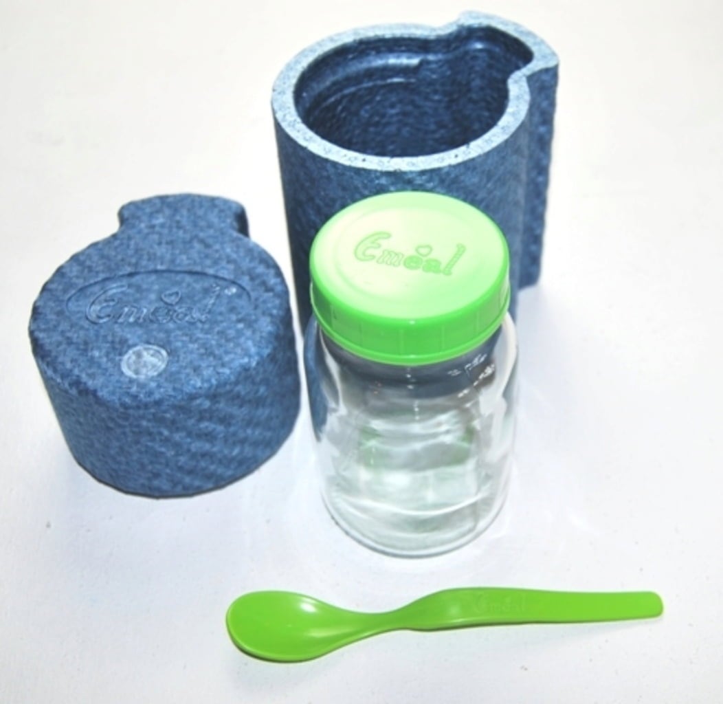 - Composé d'un récipient en verre, d'un couvercle à vis, d'une cuillère et d'un gobelet isotherme