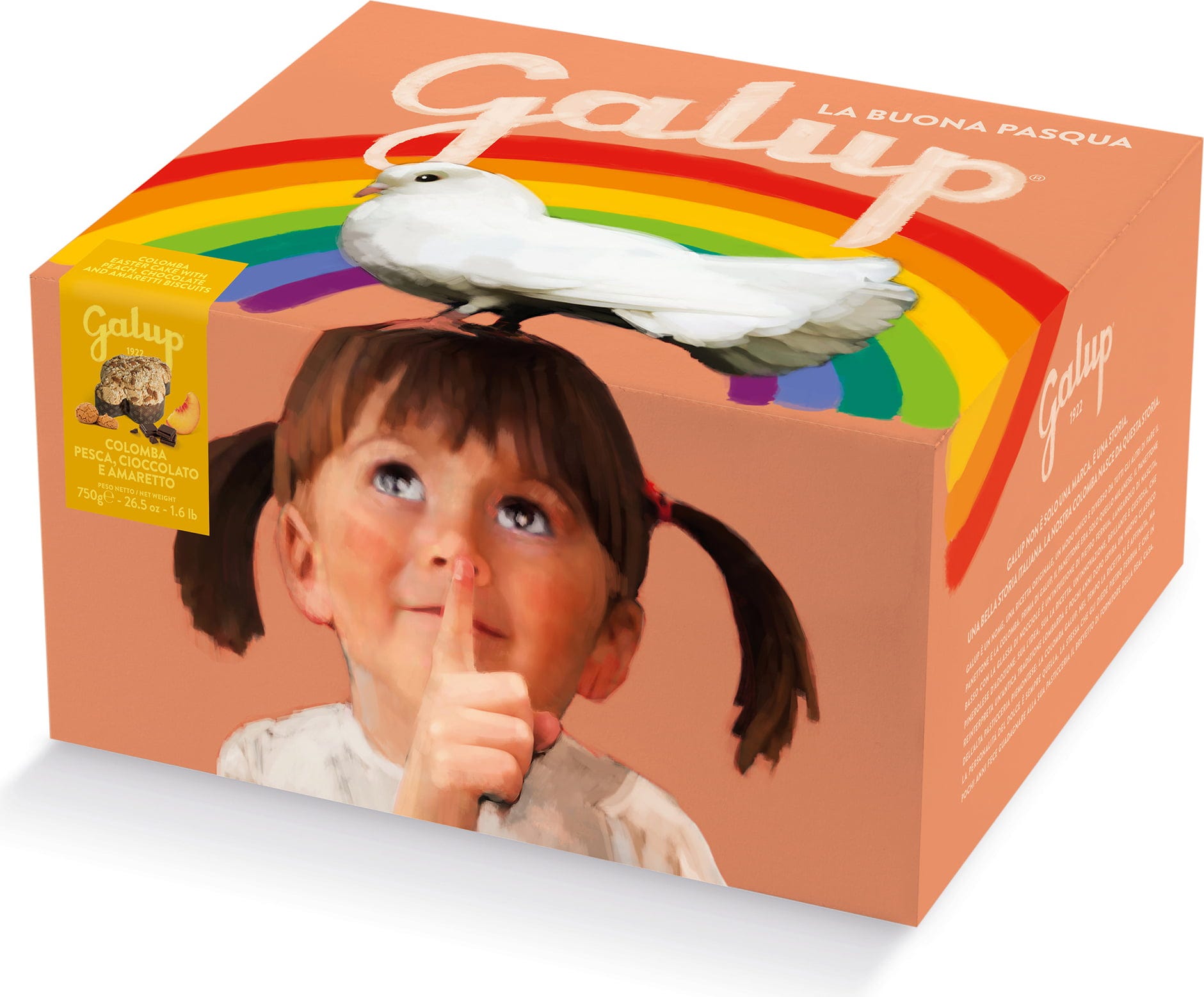 Galup Colombe Pêche, Chocolat et Amaretto, 750 g - Boîte
