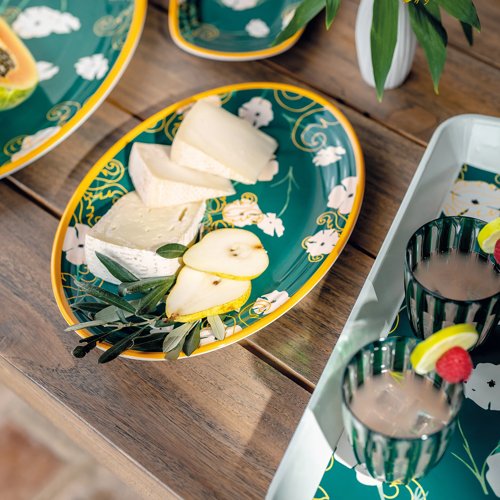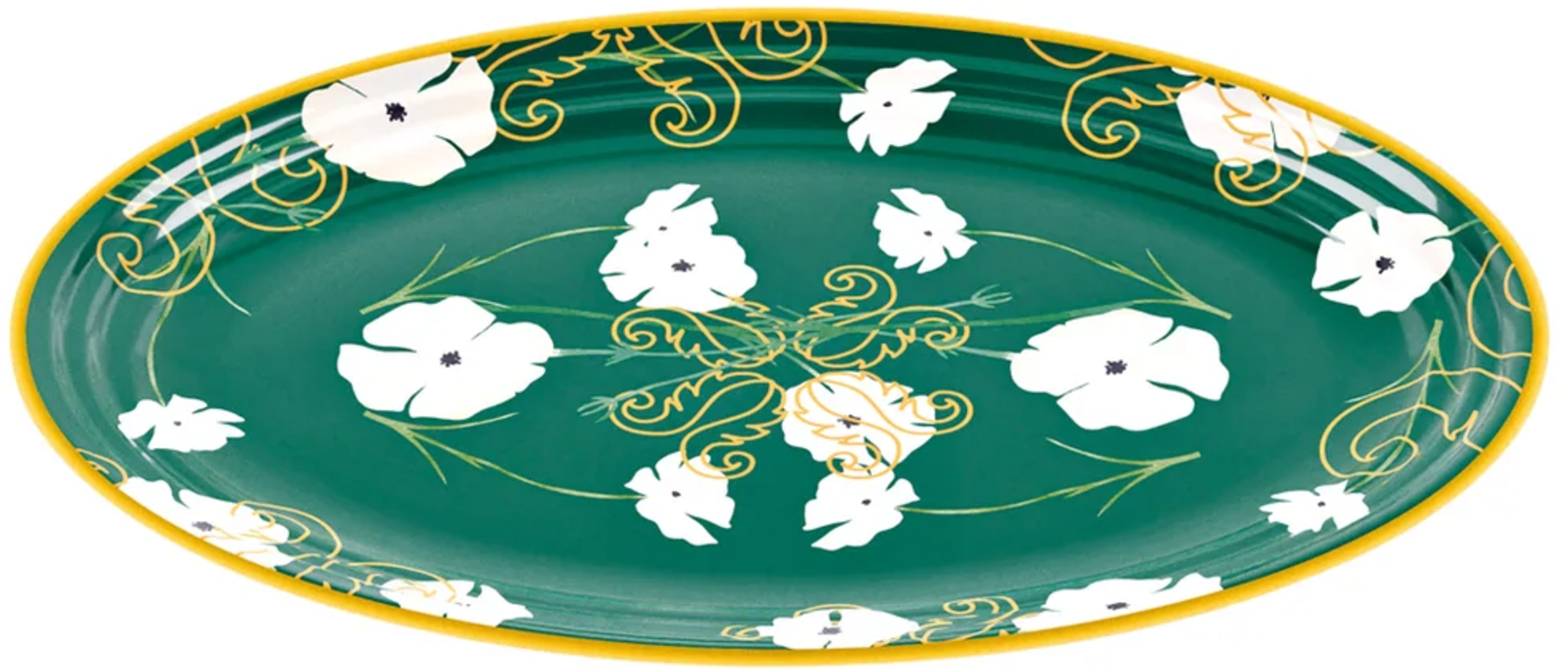 Avec sa touche d'élégance, le Plat de Service Oval "Fusion" de guzzini est exactement ce qu'il vous faut. Ses tons verts vifs, combinés à des fleurs blanches et des accents dorés, transformeront chaque table en une table de fête !
