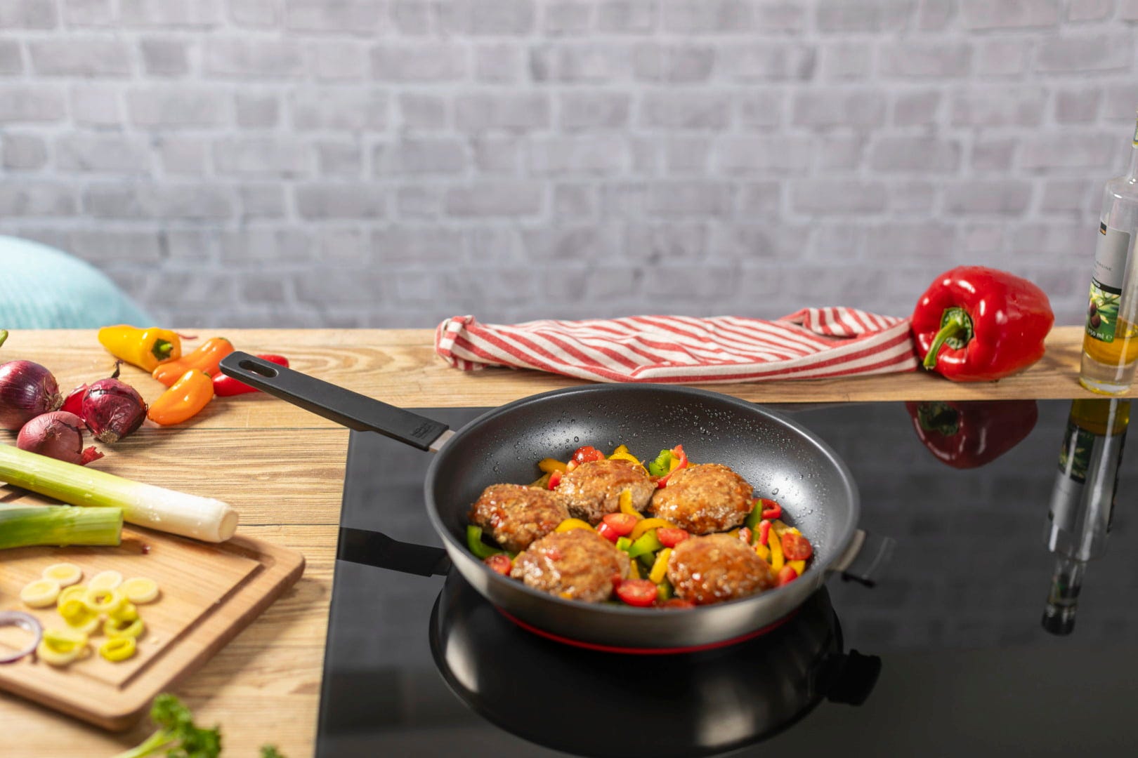 - Revêtement antiadhésif robuste à 3 couches, renforcé par des particules de titane