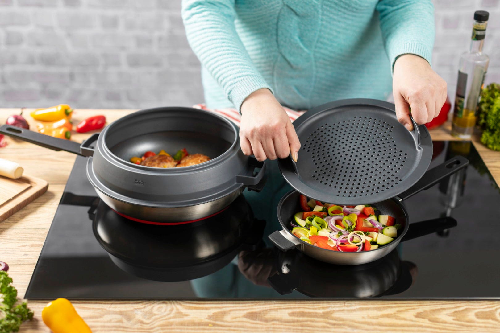 Kuhn Rikon SMART & COMPACT - Poêle à Frire avec Poignée d'Appoint, Set