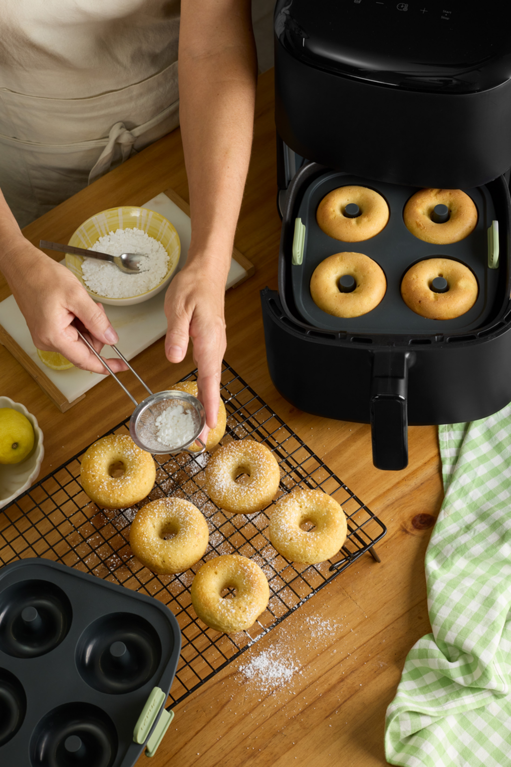 De délicieux donuts faits maison ? Rien de plus simple avec ce moule pratique pour friteuse à air chaud.