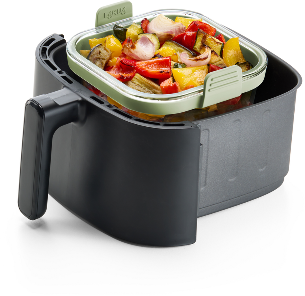 Ce récipient multifonction en verre borosilicaté est idéal pour une cuisson douce dans la friteuse à air, mais aussi au four ou au micro-ondes. Grâce à son design épuré avec poignées amovibles, vous pouvez servir directement à table.
