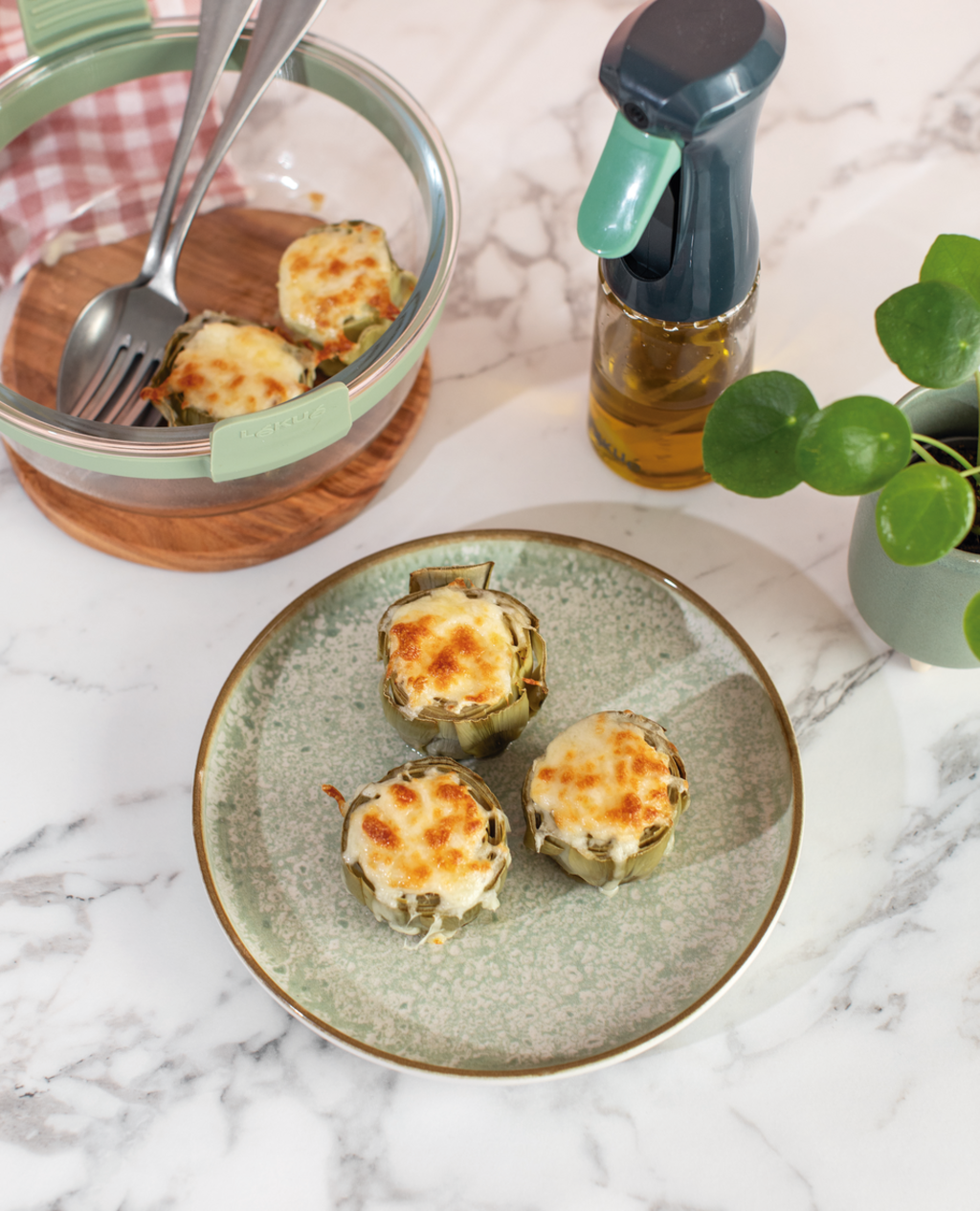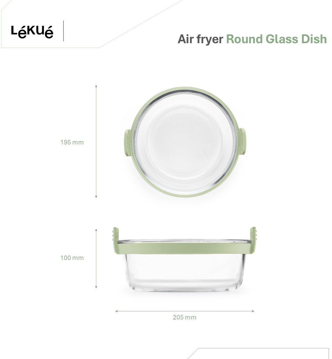 Ce récipient polyvalent et ingénieux en verre borosilicaté robuste est idéal non seulement pour une cuisson douce dans la friteuse à air chaud, mais peut également être utilisé au four ou au micro-ondes. Grâce à son design minimaliste avec poignées amovibles, il permet aussi un service direct à table.