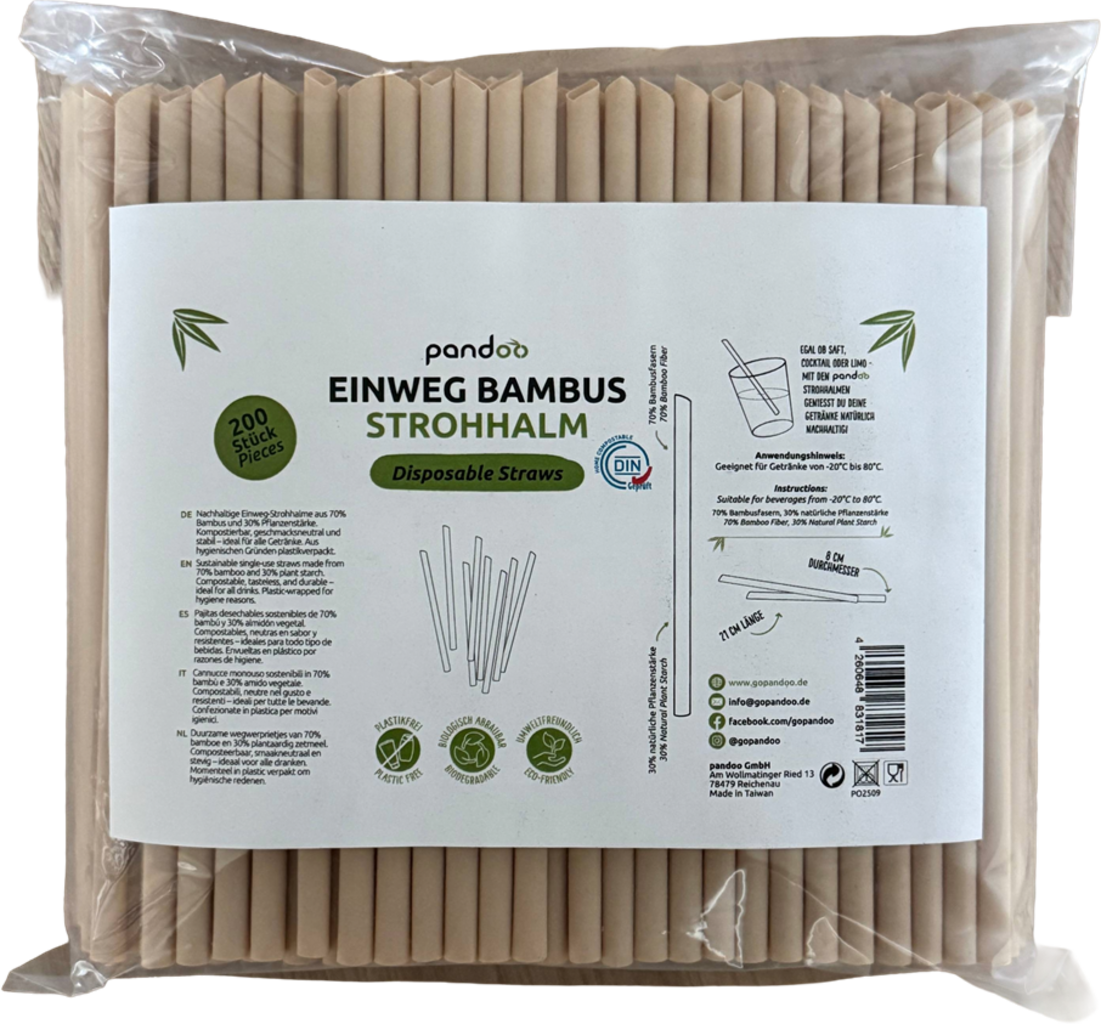 pandoo Pailles en Bambou Jetables, 200 pièces