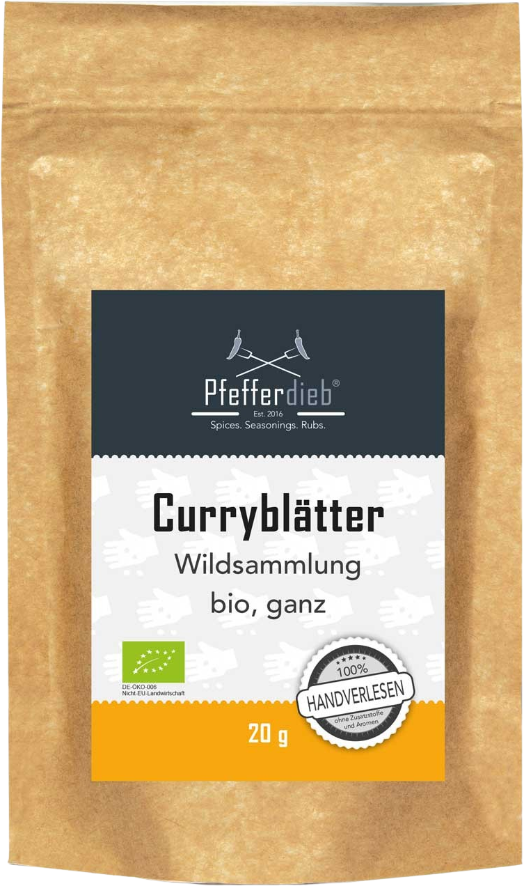 Pfefferdieb Feuilles de Curry Bio Premium de Récolte Sauvage - Entières, 20 g