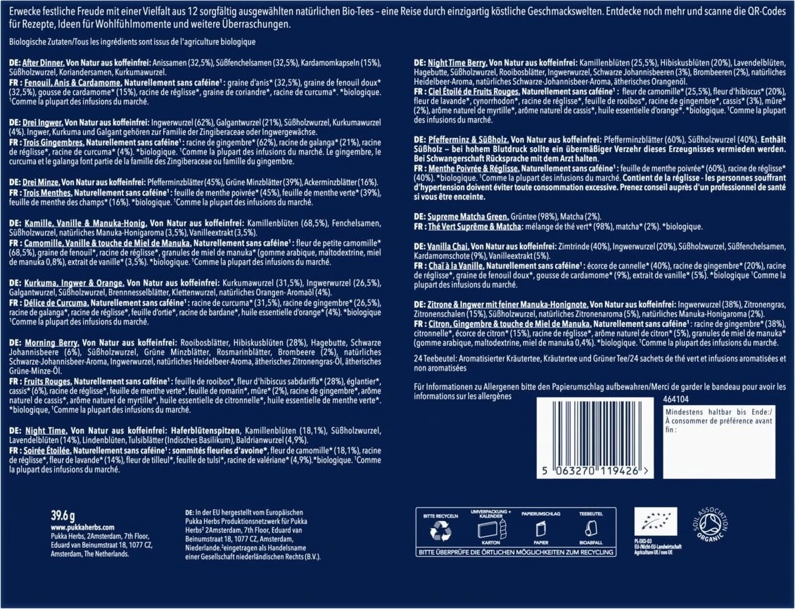 Fabricant: | Lipton Teas and Infusions Germany GmbH, Axel-Springer-Platz 3, c/o WeWork, 20355, Hamburg, Allemagne, kontakt@pukkaherbs.de |