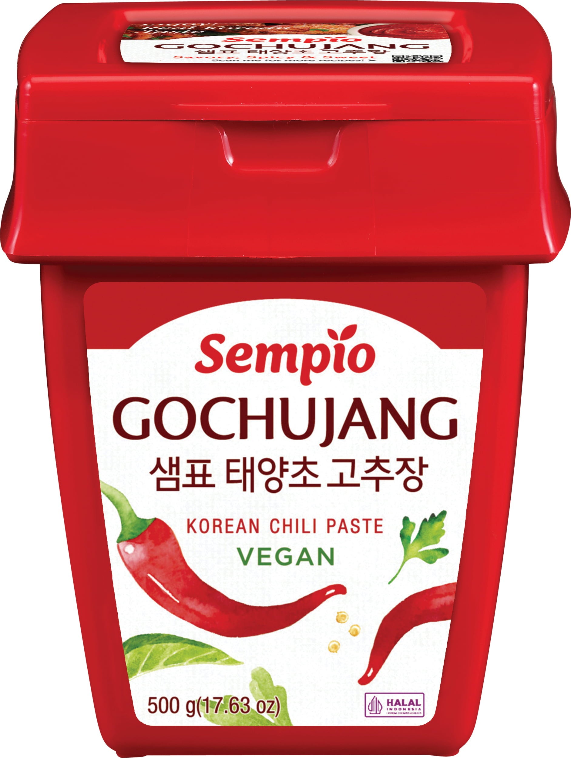 La pâte de piment épicée de Sempio est élaborée à partir de piments rouges séchés au soleil, puis enrichie de riz et de sirop de riz. Elle offre une texture onctueuse, un goût intense et relevé, adouci par une subtile note sucrée.