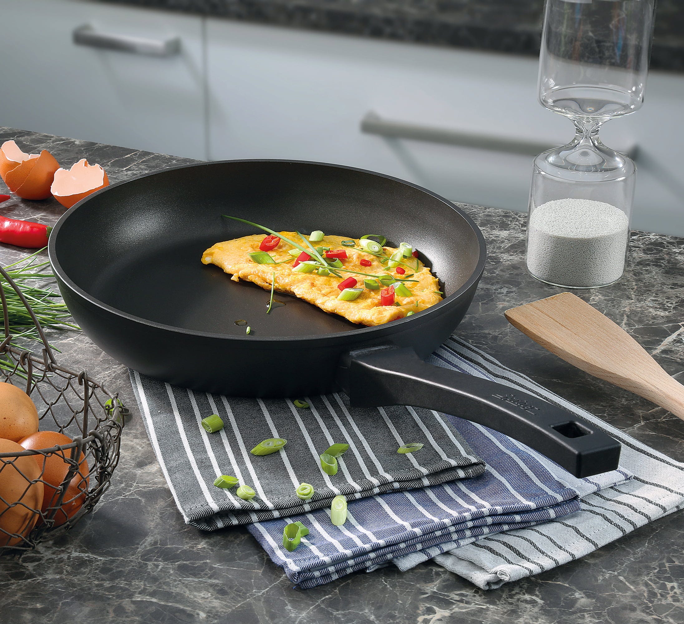Avec la Performance Classic de Spring, apportez sans effort légèreté et précision à votre cuisine quotidienne ! Le corps de la poêle, fabriqué en aluminium de haute qualité forgé, est agréablement léger en main et conduit la chaleur à une vitesse fulgurante jusqu'au bord supérieur. Grâce au revêtement antiadhésif haute performance moderne, même les aliments délicats comme les boulettes de viande juteuses ou les pommes de terre rissolées croustillantes glissent facilement dans l'assiette.