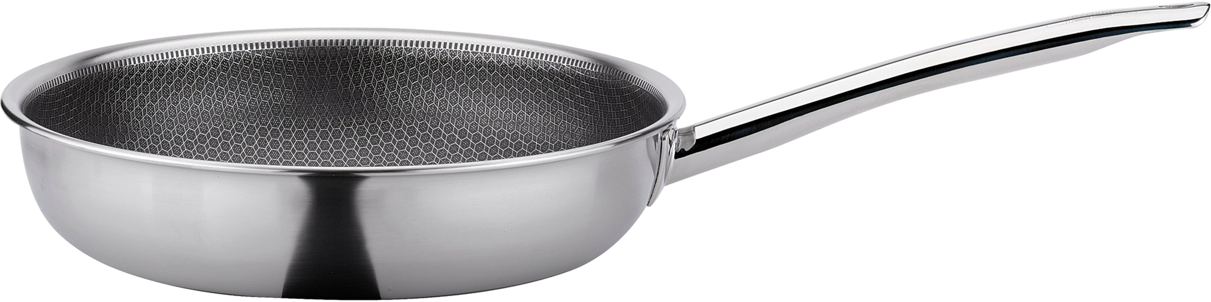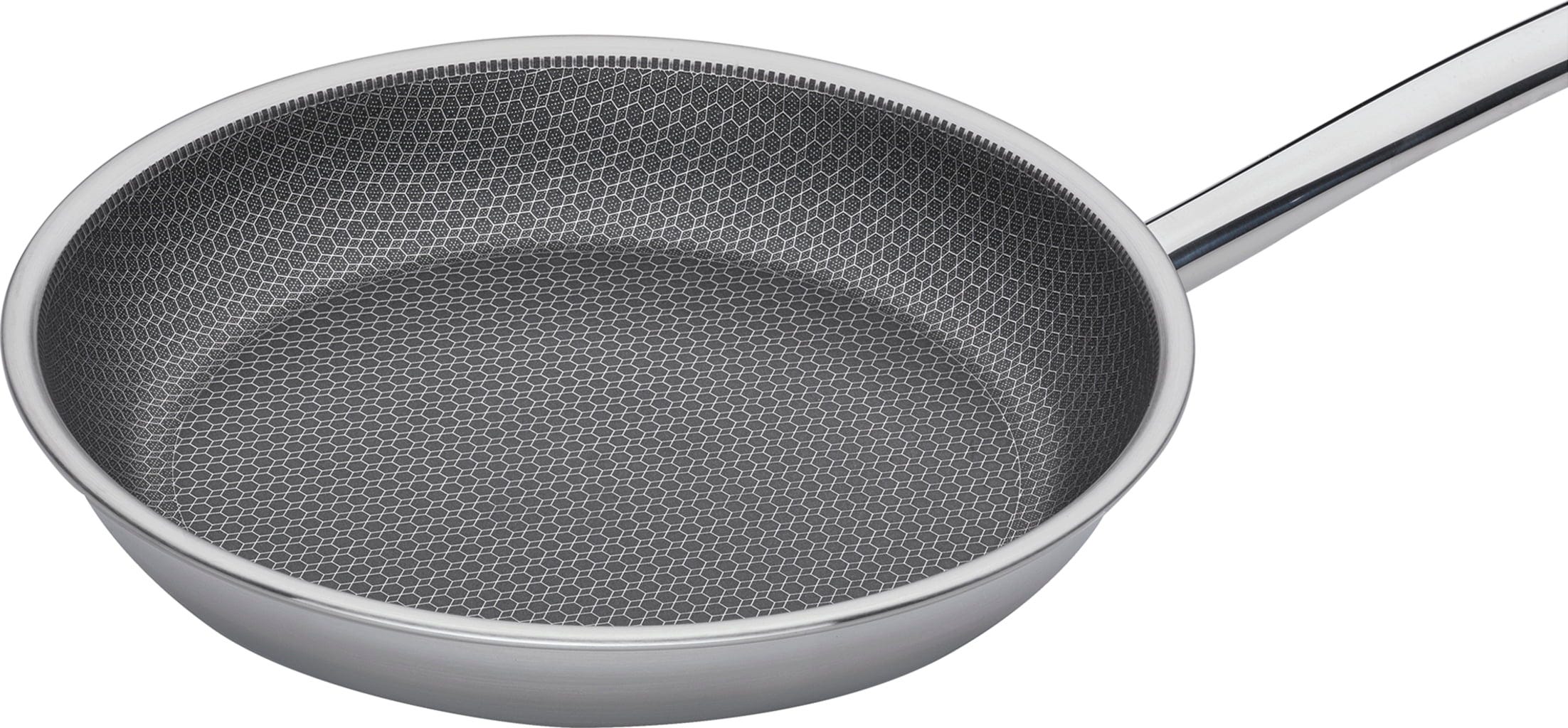 La *Poêle à frire Vulcano Cut Resist Pure XL* de **Spring** est le choix parfait pour tous ceux qui ne veulent faire aucun compromis en cuisine ! Le point fort de cette poêle est sa structure alvéolaire innovante et surélevée en acier inoxydable. Elle protège le revêtement antiadhésif minéral si efficacement que vous pouvez même utiliser des spatules en métal sans crainte.
