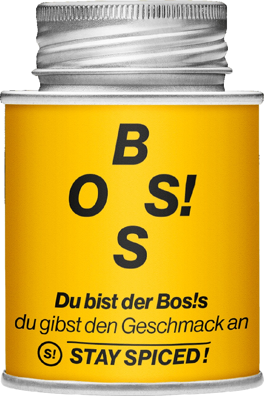Le mélange BOS!S de Stay Spiced! c'est tout simplement le condiment parfait pour la currywurst, le hot dog, la saucisse grillée et tout autre type de saucisses. Également excellent dans les plats de viande en général.