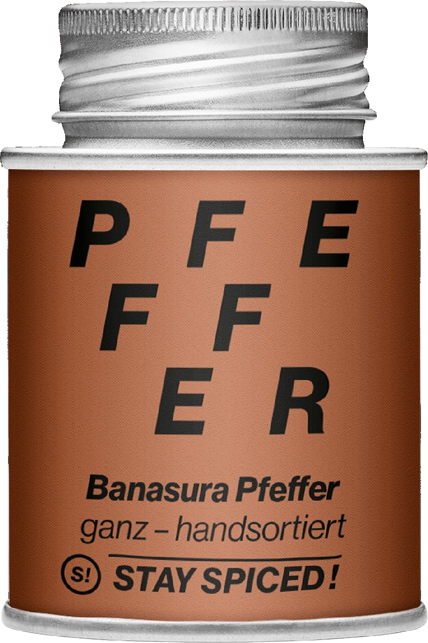 Le poivre Banasura du Kerala (côte Malabar / Inde) est une véritable exclusivité : seulement environ 2 000 kg sont récoltés chaque année, soigneusement sélectionnés à la main. Chez Stay Spiced! seuls les grains de poivre les plus gros et de la plus haute qualité de cette rareté sont autorisés.
