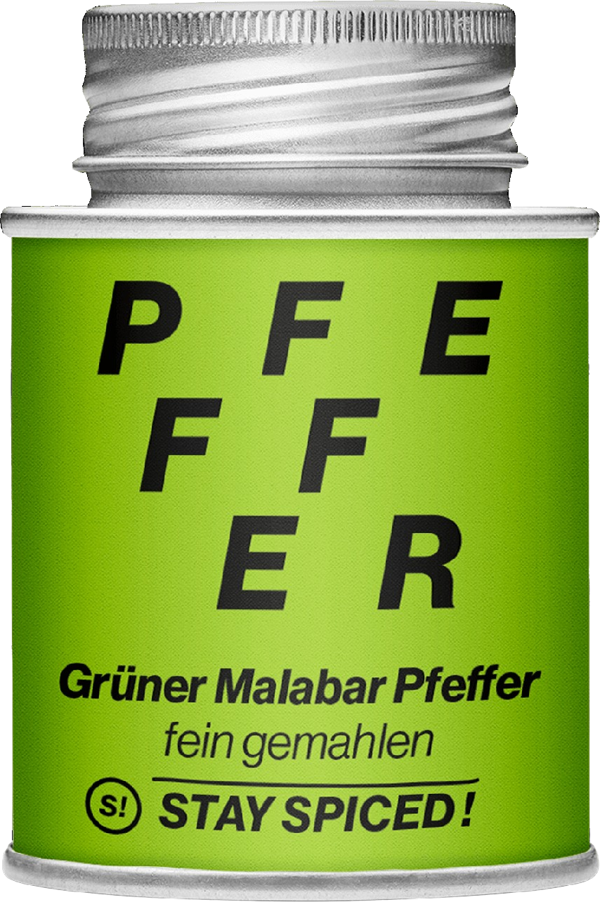 Pour obtenir le Poivre Vert Moulu de Malabar de Stay Spiced! des grains de poivre pas encore mûrs (c'est-à-dire verts) sont récoltés et traités rapidement et en douceur. À cet effet, seule la meilleure qualité de la côte indienne de Malabar entre en ligne de compte.