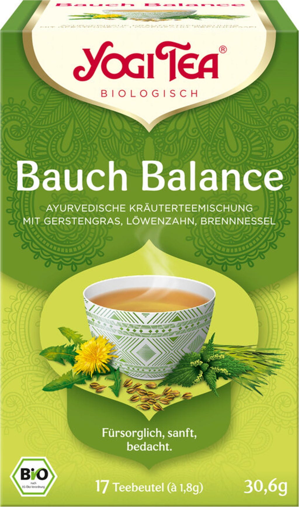 Attentionné, doux, réfléchi - c'est ainsi que se présente ce mélange de tisanes ayurvédiques. Il est parfait pour tous ceux qui souhaitent plus de légèreté au quotidien. Le goût doux de l'herbe d'orge, du pissenlit ainsi que de l'ortie est en outre doux au palais.