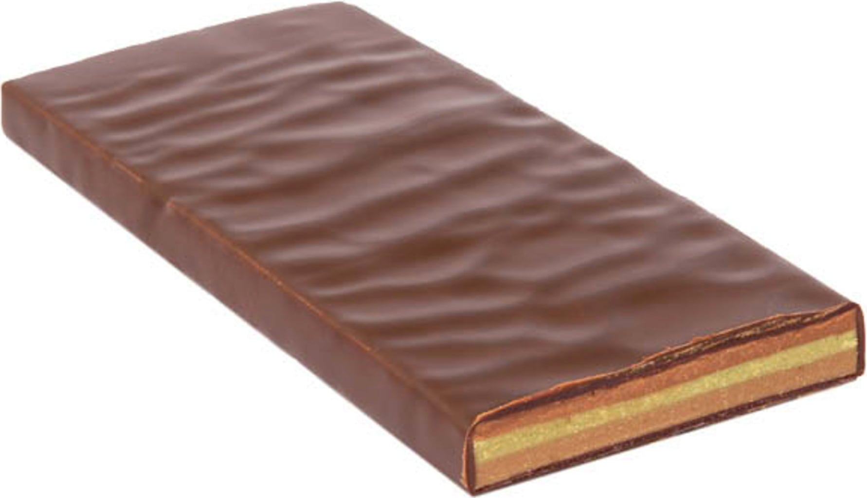 Ce grand classique aux fruits à coque est élaboré à partir de noix fraîchement torréfiées et séduit par son jeu de textures et de saveurs. La base repose sur un praliné intense aux noix, surmonté d’un praliné vert aux graines de courge, légèrement terreux et original, puis d’un praliné fondant aux noisettes. L’ensemble est délicatement enrobé d’un chocolat noir à 70 % de cacao. Et le plus beau ? Cette création est entièrement vegan — un triple plaisir à savourer dans chaque bouchée !